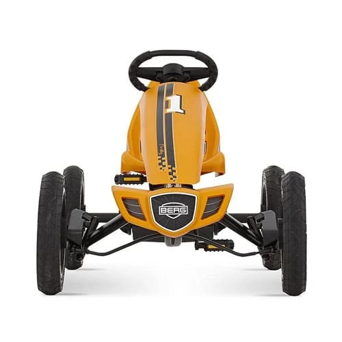 The BERG Rally Orange is a light and compact go-kart you can play with anywhere outdoors. Explore your neighborhood or organise a race – it’s all possible with this go-kart. What’s unique and safe about this go-kart is the BFR system, letting you brake with the pedals, and when you have come to a halt, you can immediately pedal backward. Because the seat and steering wheel are both adjustable, the BERG Rally Orange is suitable for children aged 4 to 12. You can make playing outside even more fun with the BERG Junior Trailer.