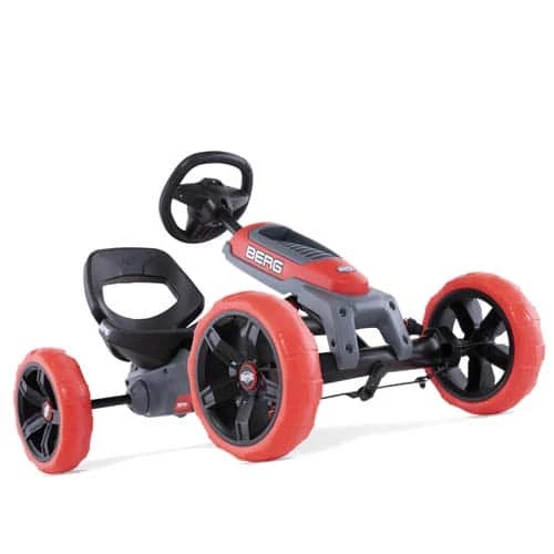 Off-road driving is exceptionally good fun with the Rebel! Children from the age of 2.5 can go-kart on this striking Reppy. The bright red EVA 10 inch off-road tyres, cool front spoiler, red springs and unique sports steering wheel ensure a strikingly cool appearance. The sports steering wheel comes equipped with a real soundbox. This soundbox has 4 different tones: braking, tooting, starting the motor and accelerating.