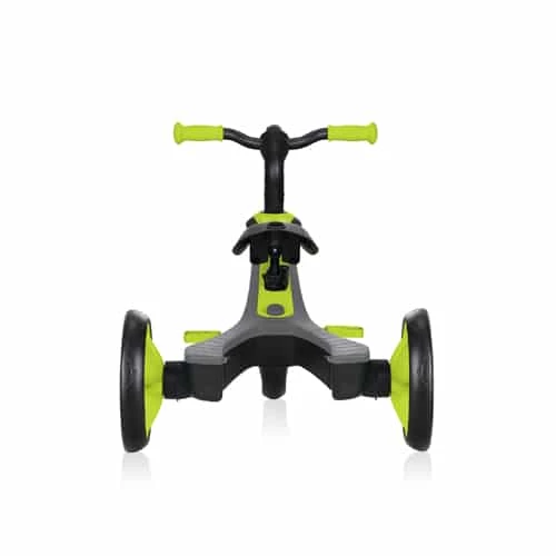 Globber’s EXPLORER TRIKE 2in1 is the only trike on the market that can be transformed into a balance bike, thanks to Globber’s patented wheel mechanism. Parents can easily and quickly convert the two rear wheels into a double-width wheel without any tools — all it takes is a twist of the rear wheels’ knob, allowing parents to transform the product from a tricycle to a balance bike, for maximum product usability! What’s more, Globber’s smart tricycle design is 100% tool-less, so no matter which stage you want to use or change into, you can speedily and conveniently transform the product with just push buttons and wheel knobs!