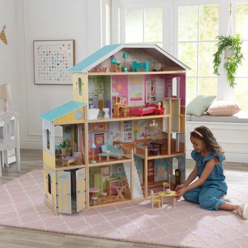 At four and a half feet / 1.2 meters tall, the KidKraft Majestic Mansion is spacious enough for even the biggest imaginations! Four levels and eight rooms to decorate and explore, there’s plenty of room for kids to play
