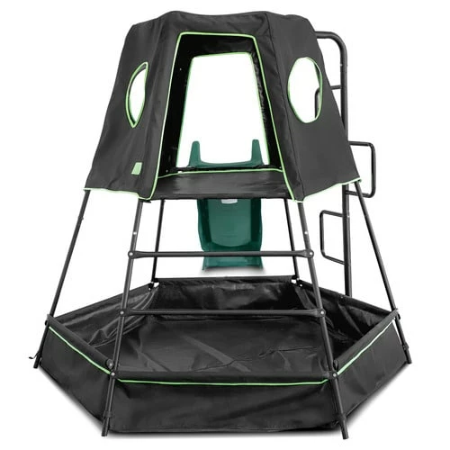 The Pallas Play Tower with Green Slide is a multi-function set with many options for play that your little ones are bound to love. Watch your kids whiz down the 2.2m wavy slide, or use the large play space underneath, perfect for a sand pit or ball pit. Durable materials such as PVC Coating and high-grade polyester are weather resistant, with a sun shade cover that provides extra UV protection.