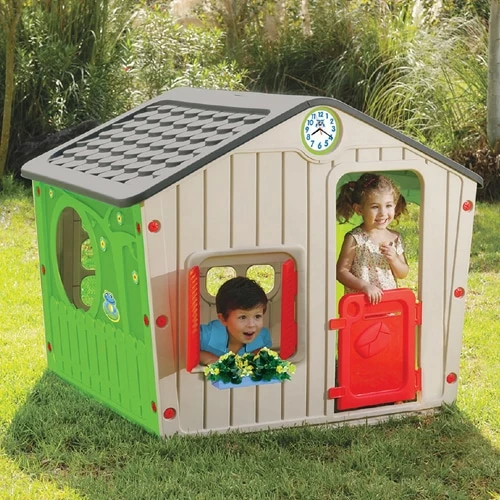 Easy construction, light weight and easy to move, the Galilee Village Playhouse (Green & Grey) comes complete for hours and hours of imaginative play.