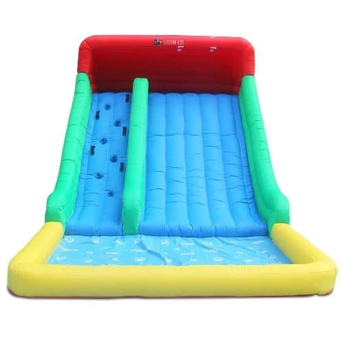 Turn any backyard into a waterpark with the Typhoon Mega Slide and Splash. Your little ones will jump excitedly up the climbing wall for the rush of the 2.6m slide. The attachable sprinkler system keeps this play centre wet to cool off on a hot day.