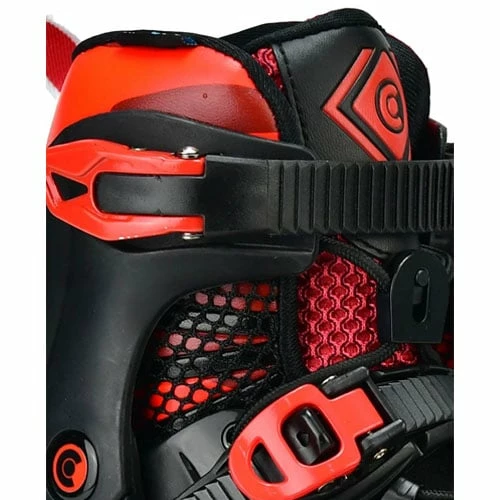 The removable Perfect fit skate liner creates the ultimate ergonomic comfortable fit, with thickened memory fit and cushioning shock absorbers for comfort and practicality. The 3 way safety lock technology ensures a secure fit combined with the light weight cuff support to stabilise the ankle.