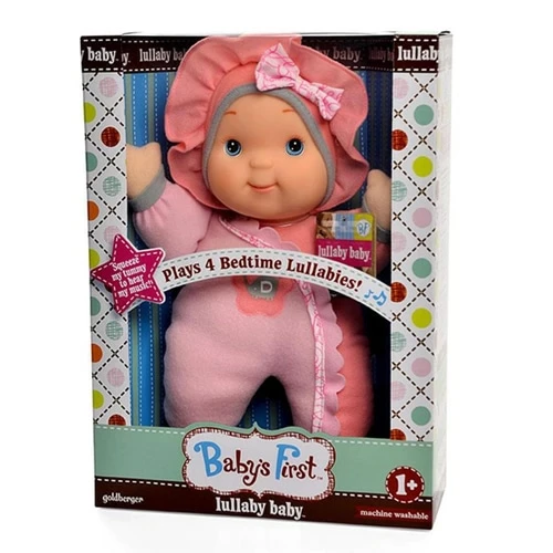 Plays 4 classics, favorite bedtime lullabies when you press her tummy! A soft, huggable doll stimulates creativity and a love for music. Develops large motor skills. Simulates the sense of sight, hearing and touch promotes eye-hand coordination. Nurtures baby’s feeling of security. Machine Washable (when the module is removed).