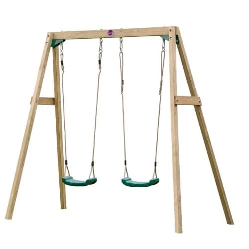 Plumโs classic Wooden Double Swing Set is perfectly sized for two.