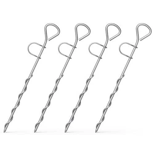 Secure your trampoline more strongly than pegs, with a corkscrew-and-bracket design.